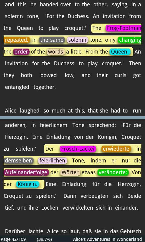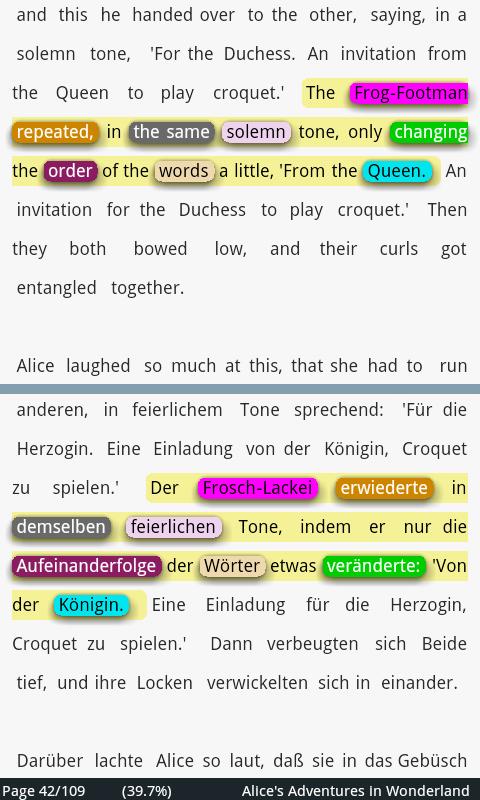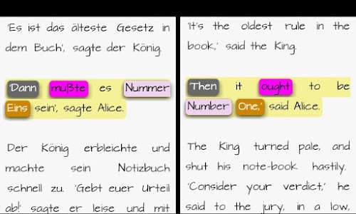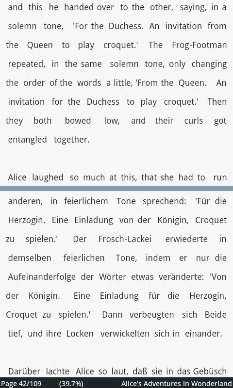 This version of Alice in Wonderland engl/germ Android App comes with one universal variant which will work on all the Android devices.