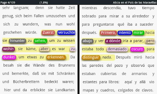 In Bili-Book apps you have two book-texts in two different language on you screen. These texts will synchronize automatically; that means if you move the text position of one text, in the other screen the text will move automatically to this position.
