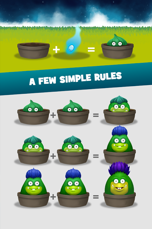The basic idea here is you take a "seed" card and a "pot" card, mash them together, and end up with a "tiny plant" card. Now Combine two equal plants to obtain a bigger plant. Go on combining equal plants in order to fill all the board with the biggest plant you can obtain.