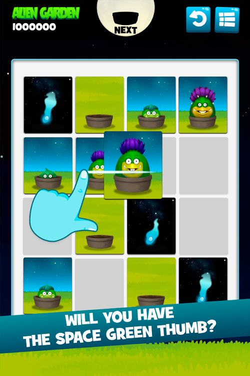 Alien Garden is a puzzle game in which you have to slide and combine little plants in order to obtain bigger plants.