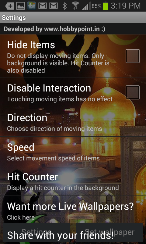 This release of ALLAH Imam Reza Shrine HQ LWP Android App available in 3 variants. Please select the variant to download. Please read our FAQ to find out which variant is suitable for your Android device based on Screen DPI and Processor Architecture.