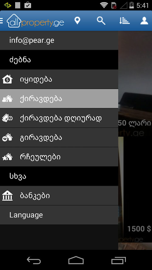AllProperty.ge is a Real Estate Search Engine based in Tbilisi, Georgia. The app will help you to rent or buy a house, flat or an apartment in Tbilisi, Batumi, Kutaisi and in other cities of Georgia.