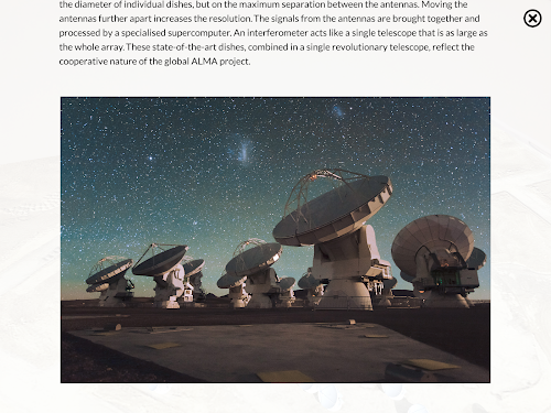 Discover the most powerful telescope in existence for observing the cool Universe! An augmented reality app that will allow you to experience how the Atacama Large Millimeter/submillimeter Array, or in short ALMA, works.