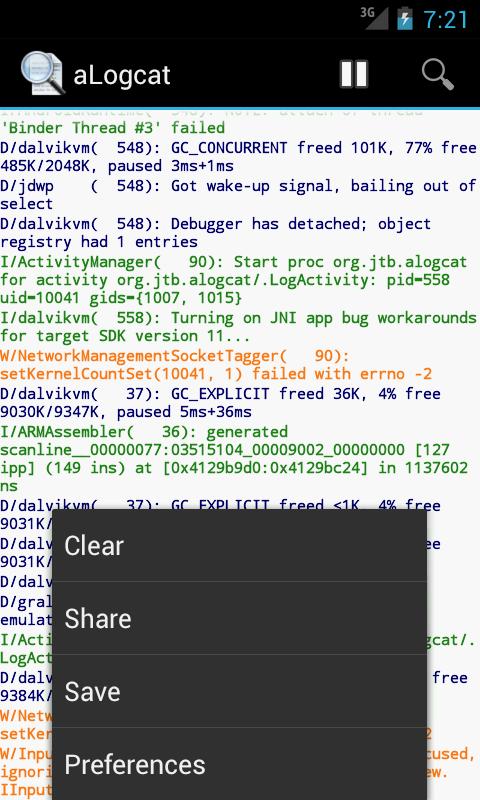 This is the free version of aLogcat. Please consider the donate version if you find it useful. If not, that's okay too. This version is exactly the same as the donate version.