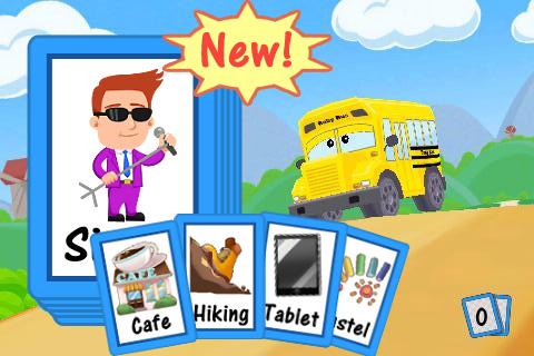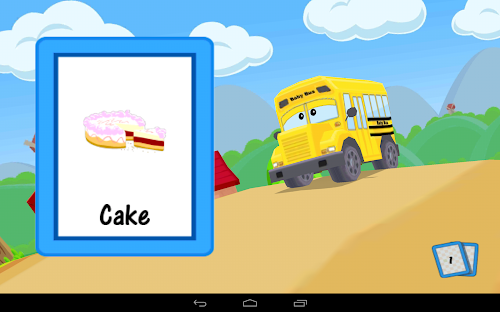 As you roll along, big block letters appear before you on the road. Aim your bus toward these letters and when you make contact with them, you'll hear the letter pronounced. When you gather all the letters to spell a word, you'll hear the word pronounced and you are presented with a card showing the word along with an illustration. Track how many words you have gathered as the cards pile up.