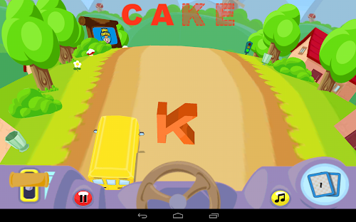 If this is your first time behind the wheel, there is no need to worry -- it's intuitive and easy even for the littlest learners. Just rotate your mobile device like a steering wheel to navigate your way down the scenic road. You can choose to listen to music or just the sound of your wheels. Most importantly, watch out for the letters!