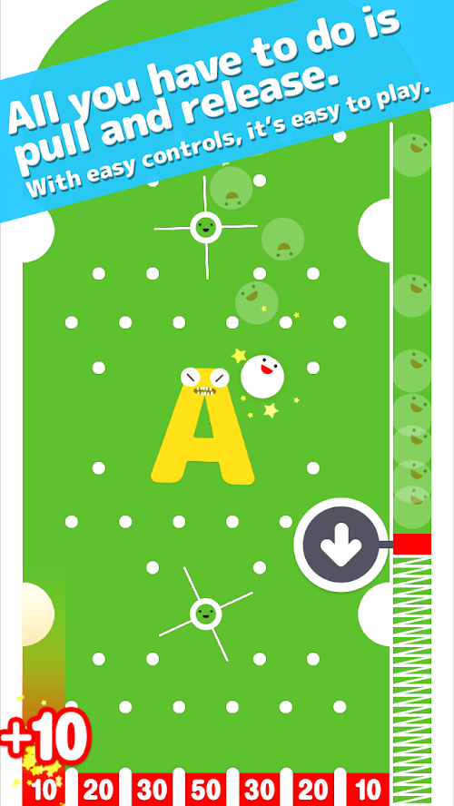 Release a ball: Drag back the part labeled with an arrow (the spring)