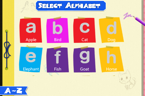 Step 3: Workbook- Practice writing each alphabet and its associated object. On correct write, corresponding object image is shown. On wrong, hint is shown so that kid can draw it correctly next time.