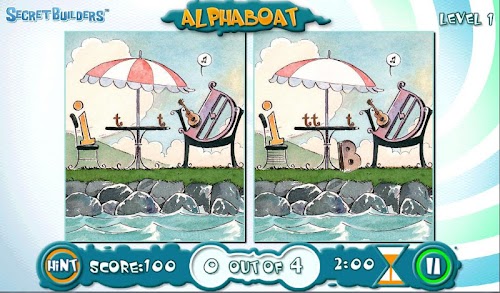 Play the FREE Alphaboat hidden difference game to find hidden letters in the scenes.