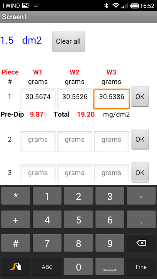 Calculate the weight loss results (mg/dm2) automatically at a known surface (dm2).