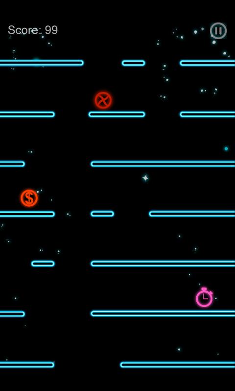 Amazing FallDown is a simple but fast-paced and addictive game. Just tilt your device to control the ball. Fall down through the holes and avoid getting squished at the top. Pick up powerups and score points by staying alive as long as possible.