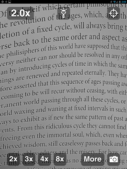 It's the smoothest magnifying glass for Android you'll ever use. See screenshots and try for yourself.