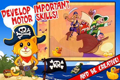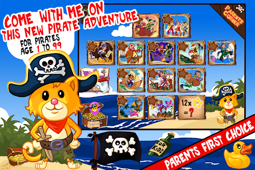 This kidspuzzle is perfect for toddlers and older kids because it contains different difficulty levels. You also can choose 16 different languages, but your kid don't need any of them to play the game. This toddlerpuzzle will really amaze your kids with it's great graphics, sound and animations. Pirates, Adventure and a lot of action awaits your kid. The app contains a lot of minigames, like bubbles, balloon bursting and a special splash effect kids love!