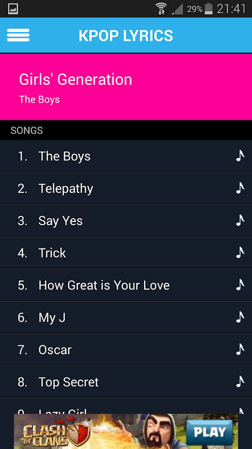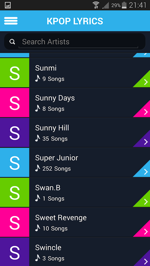 Over 350 KPop groups available with more being added regularly. Our popular individual apps for groups such as Girl's Generation, EXO, Shinee, etc. can be replaced with this app or kept alongside to easily seperate lyrics.