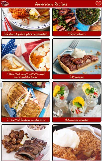 With our American recipes app all will get have feeling that i can cook easily. All have this question in mind how to cook complicated American recipes. Even though Pizza's are Italian dishes but there are many special pizza recipes and yummy burgers are part of American cookbook. American cake recipes have a great variety. American people really love cake recipes. American cake recipes are very tasty, there are chocolate cakes, strawberry cakes etc. There American Indian recipes which gives combine taste of American recipes and Indian recipes. Soup recipes and salad recipes comes in the group of healthy recipes. This Online cookbook will really help all the starters in cooking. Mexican dishes contain very tasty beef recipes and pork recipes. Among beef recipes steaks are very famous. Dinner recipes and casserole recipes are also include in this app.