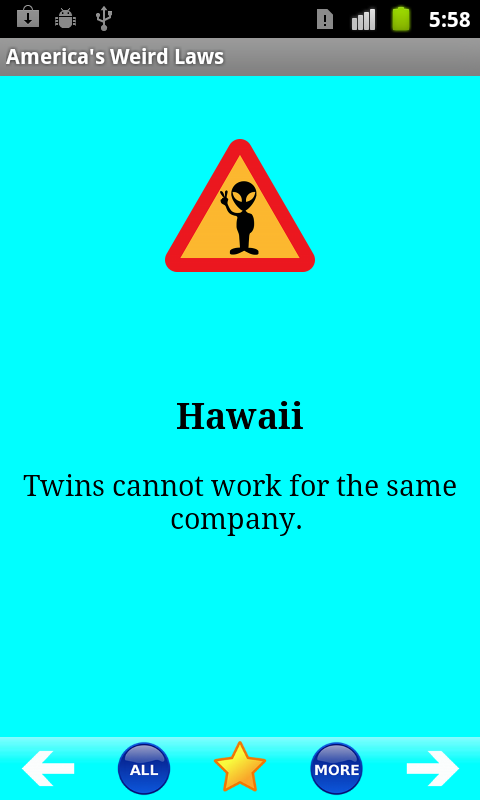 Share your favorite weird laws via Email! Sounds good? Then voice your opinion with a nice review! Even celebrities call to say how much fun this app is!