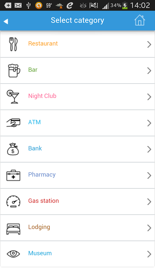 Restaurant / Bar / Night club / Lodging / Hotel / Museum / Pharmacy / ATM / Bank / Gas station