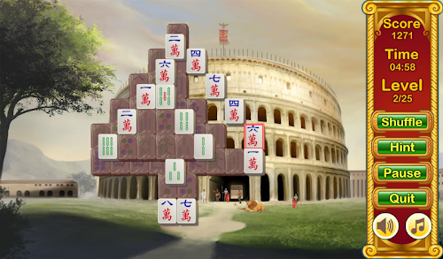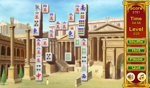 Discover Ancient Rome in this beautifull Mahjong Solitaire game. Play the game with in the background the Colloseum, The Roman Forum, Castel Sant'Angelo and Circus Maximus. Remove all tiles to advance to the next level.