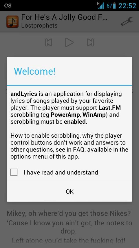 * Keeps lyrics of listened songs in the internal memory, so it doesn't have to download them from the Internet again