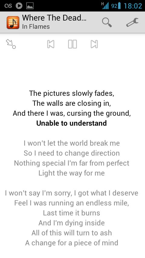 * Keeps lyrics of listened songs in the internal memory, so it doesn't have to download them from the Internet again