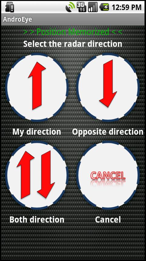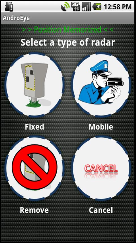 AndroEye is a speed camera warning system using FoxyTag, the worldwide most complete speed camera database. It signals fixed speed cameras, mobile speed cameras and ghosts (places where there are often speed controls).