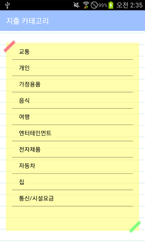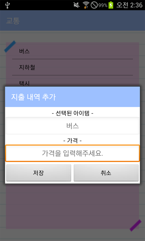3. 카테고리를 통한 입력 - 지출 입력시 새분화 되어 있는 카테고리를 통해 입력을 하도록 되어 있습니다.