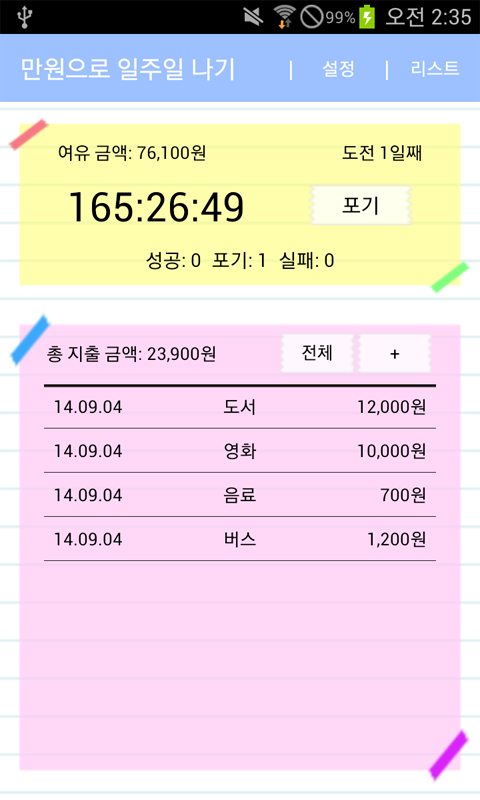 2. 도전기간(일주일)안에 정해진 금액만 사용합니다.