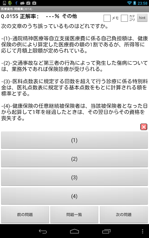 ・4択式の出題で、通勤や通学中等の空いた時間に手軽に学習することができます。
