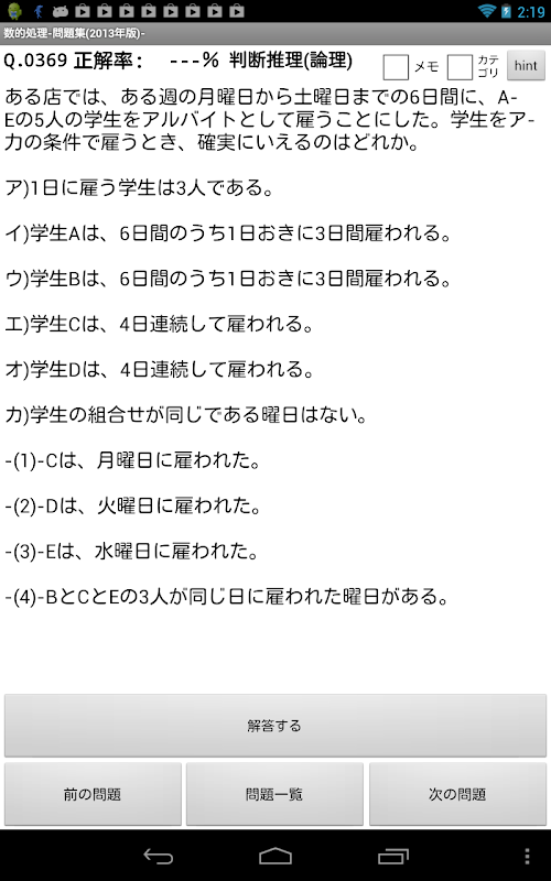 If you are looking to download other versions of 【公務員】「数的処理」 Android App, We have 1 version in our database. Please select one of them below to download.