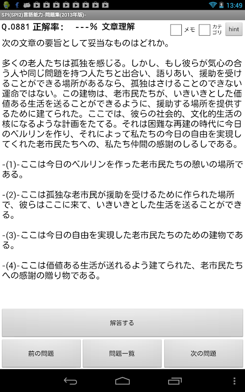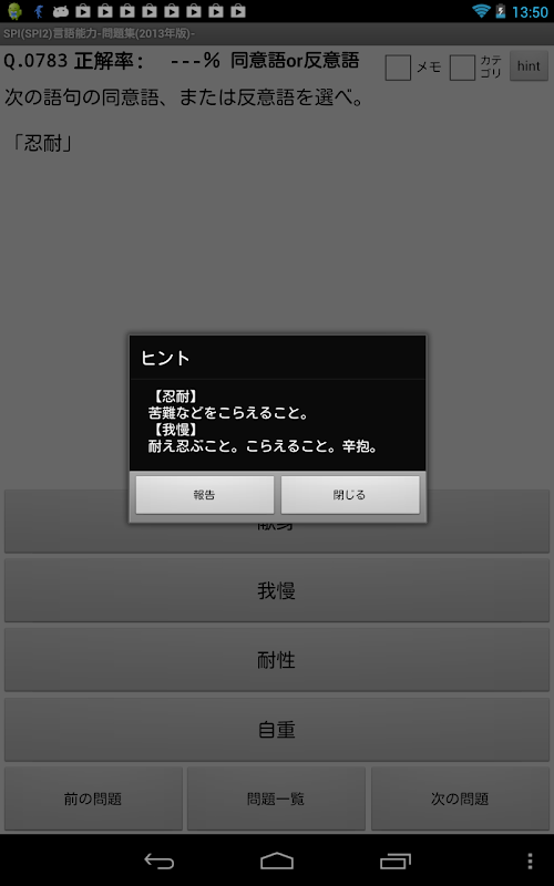 This version of 就職試験(一般常識・時事用語・SPI)問題集 Android App comes with one universal variant which will work on all the Android devices.