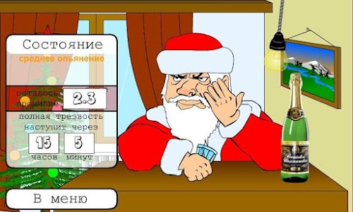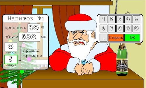 Appendix "Alcotest Christmas", with a cheerful Santa Claus and not only will please you and merry company, but also help to determine the level of alcohol in your blood, tell the time of his complete removal, for example if tomorrow you are planning to go somewhere.