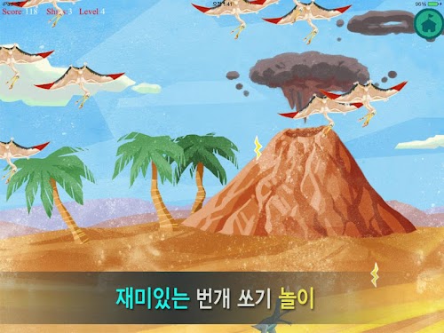 코코는 번갯불을 쏘며 자신을 향해 오는 익룡을 쏘아 떨어뜨립니다. 재매있는 번개 쏘기 놀이를 해보세요!
