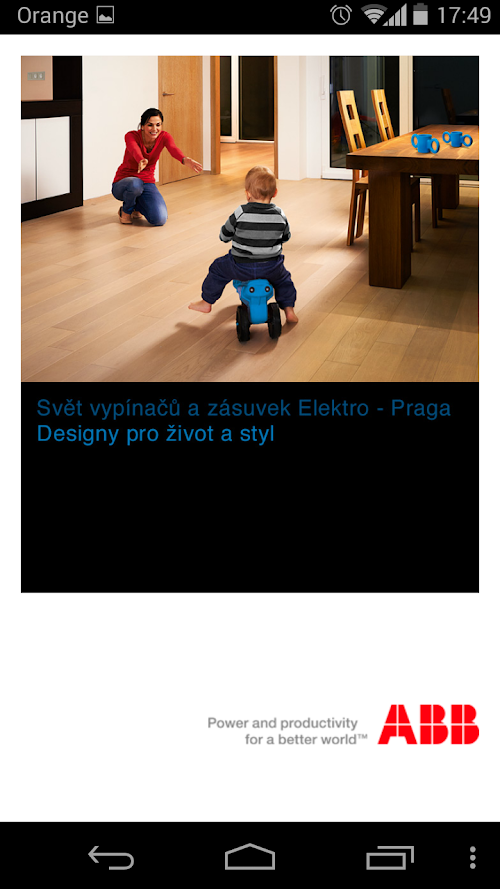 Aplikace Svět vypínačů je určena pro snadný výběr z designových řad vypínačů, které nabízí společnost ABB s.r.o., Elektro-Praga na českém trhu. Aplikace je rozdělena do tří částí: For Life – designy pro život, For Style – designy pro náročné a Chytrou elektroinstalaci v podání systémů Ego-n® a ABB i – bus® KNX. Kdekoliv se nacházíte, můžete vybírat výrobky dle Vašeho vkusu a stylu, které se hodí do Vašeho interiéru.
