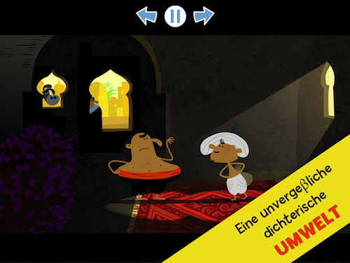 In dieser interaktiven Erzählung begleitet das Kind Ali Baba durch ungewöhnliche Abenteuer und muss ihm helfen, um in der Geschichte weiterzukommen und dabei Gefahren zu überstehen.