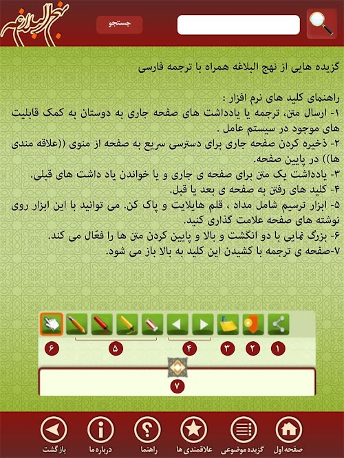 2- امکان ارسال متن، ترجمه و یادداشت های صفحه جاری به دوستان