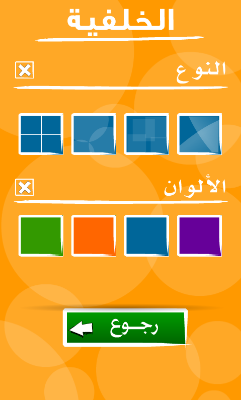 1. الخلفية : يمكن للاطفال ابدال لون الخلفية و نمطها بالطريقة التي يريدها