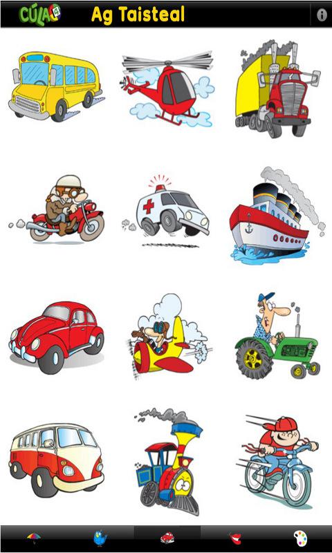 Cúla4 is the young people’s service on TG4 (the national Irish Language broadcaster). This App brings you over 100 fun Irish language words and images for pre-school kids or learners. The words include Weather, Animals, Vehicles, and Parts of the Body. It includes the written and the spoken version of each word. It also includes a drawing page, to scribble your own words! Cula Caint. Enjoy!