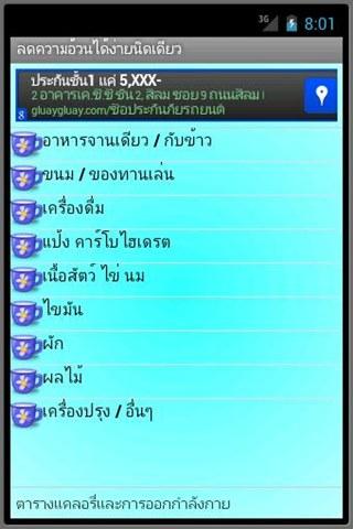 เทคนิคลดความอ้วน พร้อมตารางแคลอรี่อาหารไทย ฝรั่ง และ ขนม เครื่องดื่ม เกือบทุกชนิด เหมาะกับคนไทย ดูแคลอรี่ง่าย ค้นหาสะดวกรวดเร็ว