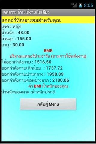 คำนวนแคลอรี่ ควบคุมแคลอรี่ได้ด้วยตนเอง คำนวน BMR แคลอรี่ที่่เหมาะสมต่อวัน เหมือนมีที่ปรึกษาด้านน้ำหนักอยู่ใกล้ๆ คำนวน BMI วัดความอ้วนของคุณว่าอ้วนเกินไปหรือยังได้ตลอดเวลา