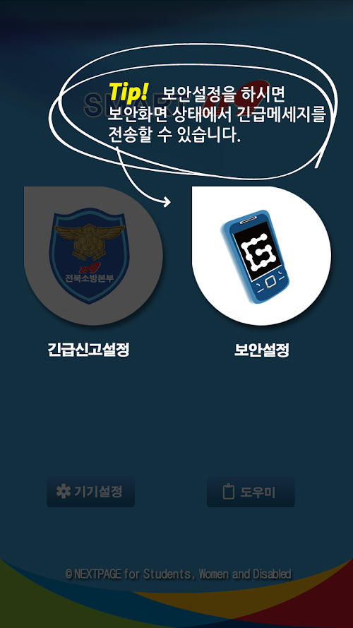 가족, 지인 및 소방서로 자신의 위치를 문자로 신고 할 수 있는 서비스 입니다.Smart 119 service