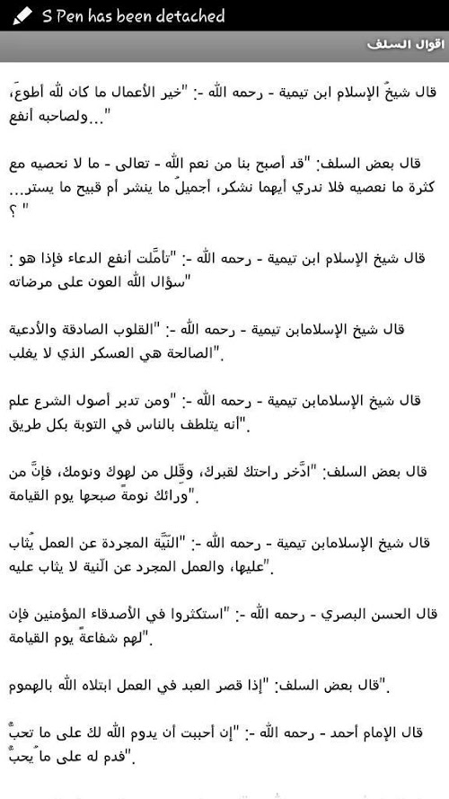 مجموعة كبيرة جدا ومنتقاة بعناية من اقوال ائمة السلف رضي الله عنهم اجمعين .. من الصحابة والتابعين .. وتابعيهم .. وشيوخ الاسلام والائمة .. كابن تيمية وابن القيم واحمد بن حنبل والشافعي ومالك وابو حنيفة .. والعلامة السعدي .. وعبد الله بن مطرف .. والنووي وغيرهم الكثير من ائمة السلف رضوان الله عليهم اجمعين ..