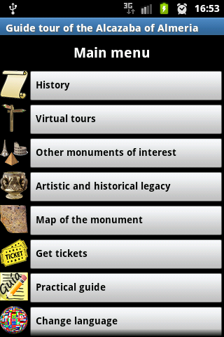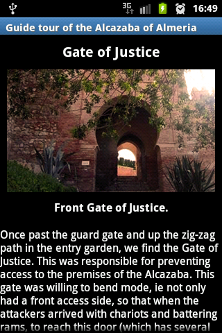 This mobile and tablet application is a virtual tour guide for all those wishing to visit the Alcazaba of Almeria and its monuments annexes. Lets help site visitors thanks to the numbering follows the plane and explaining the different sections of the application.
