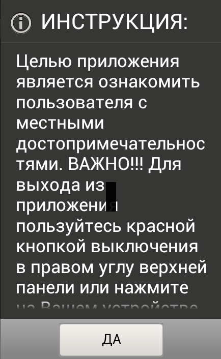 Before you download the version PRO, you can find the application by downloading the version TEST, which contains the general story of the city of Kiev and will help to check whether the application works correctly on your mobile device.