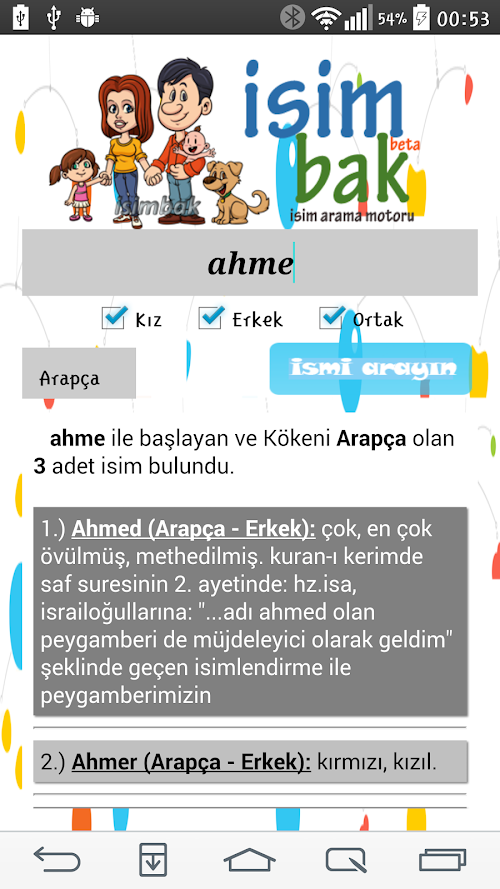 İsim aramak bu kadar kolay. ismin başını yazın size seçenekleri gösterelim. Basit ve sade.