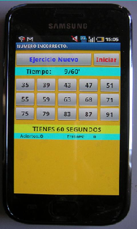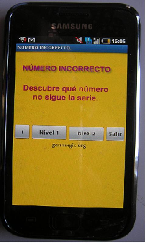 Aplicación de cálculo mental donde se tiene que identificar el número incorrecto en una serie de números. La aplicación genera series de números con dos niveles de dificultad. Utiliza el sintetizador de voz del teléfono.