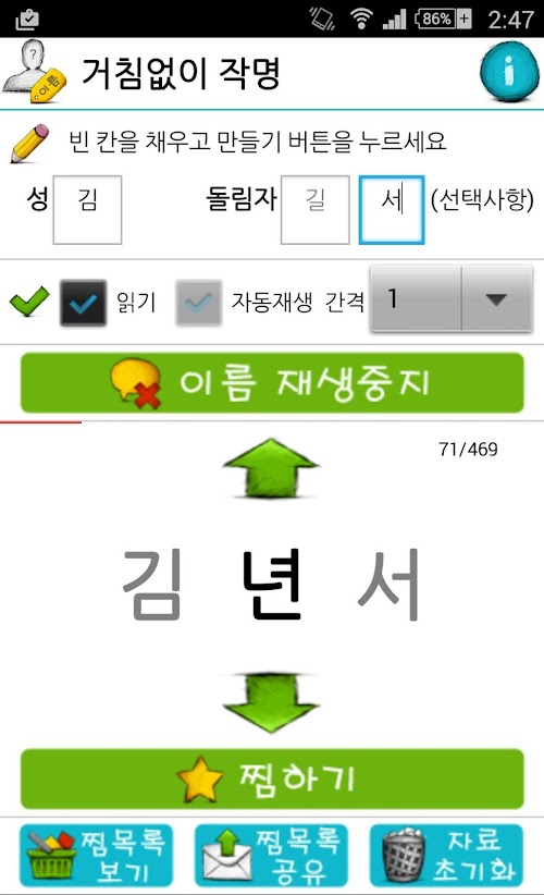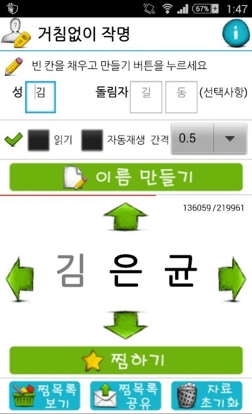 한자 뜻, 이름의 길흉등은 고려하지 않고 한자 음만을 조합하여 원하는 이름을
