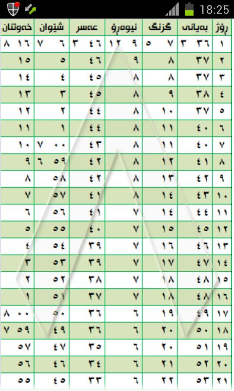 ئهم بهرنامهيه كاتهكانی بانگ لهخۆ دهگرێت