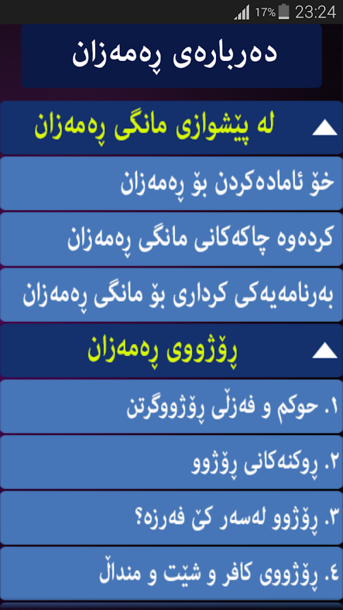 ١. لە پێشوازی مانگی ڕەمەزان کەلەم بەشانەی خوارەوە پێکهاتووە