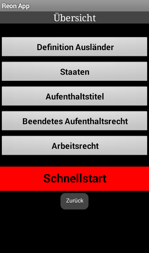 Die Schnellübersicht geht zudem Schritt für Schritt durch das Recht und ermöglicht so das Abhandeln eines Falles. Ich hoffe, dass sie als Hilfe zur Seite stehen kann. A summary of immigration law. This app is designed to simplify the handling of the immigration law and provide a small summary. It is clearly arranged and intuitive to use.