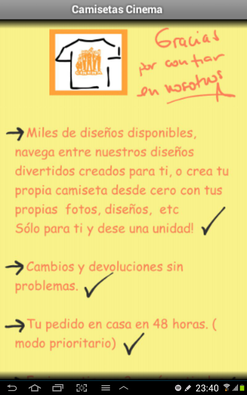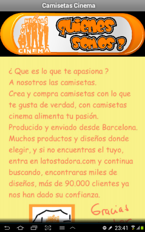 Esperamos que disfrutes con esta aplicación,encuentres una camiseta para ti, y sobre todo que nos cuentes tu experiencia y nos ayudes a mejorar.